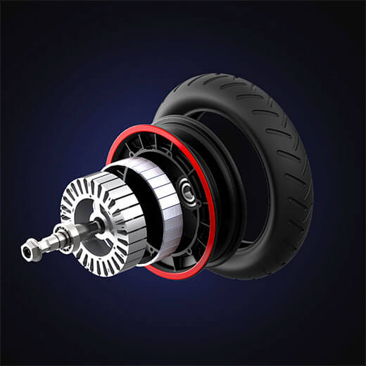 Надійні комплектуючі Переднє і заднє колесо самоката оснащено гальмівними системами, які спрацьовують почергово в залежності від ступеня гальмування. На задньому колесі встановлений перфорований гальмівний диск, а спереду — система регенерації енергії. Все це, під назвою — система E-ABS дає мінімально можливий гальмівний шлях при натисканні на гальмо. Колеса з діаметром 8,5" тепер здатні їздити не тільки по асфальту, але і по ґрунтових дорогах і траві.